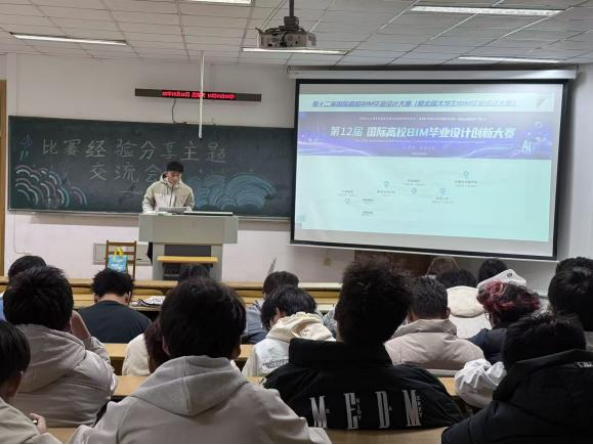 三位优秀的学长学姐依次推进了分享会的进程,介绍了由第十一届国际高校BIM毕业设计创新大赛到商科综合能力大赛再到测绘之星比赛最后到市场调查大赛的参赛经验与比赛心得。