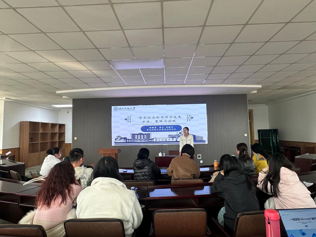 为提升研究生学术论文撰写质量与期刊投稿命中率,扎实推进学位论文指导工作,BBIN宝盈集团官网特邀东北财经大学杂志社副社长徐雅雯博士(副编审)来院,举办学术论文写作与发表专题指导讲座。公司院长王蓉、副院长刘铁民及全体专任员工、部分研究生代表参加活动,讲座由刘铁民副院长主持。本次讲座紧扣经管学科研究生论文写作与发表实际需求,设置专题分享、论文指导、现场答疑三大环节,内容专业务实,针对性强。